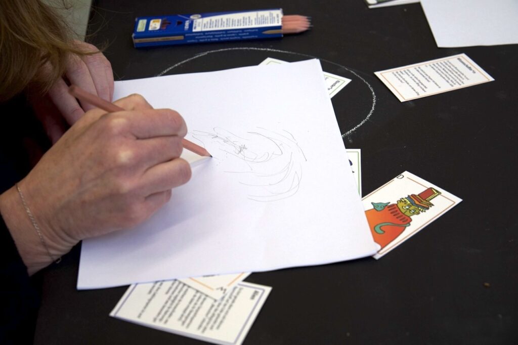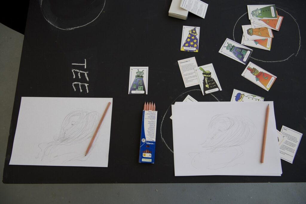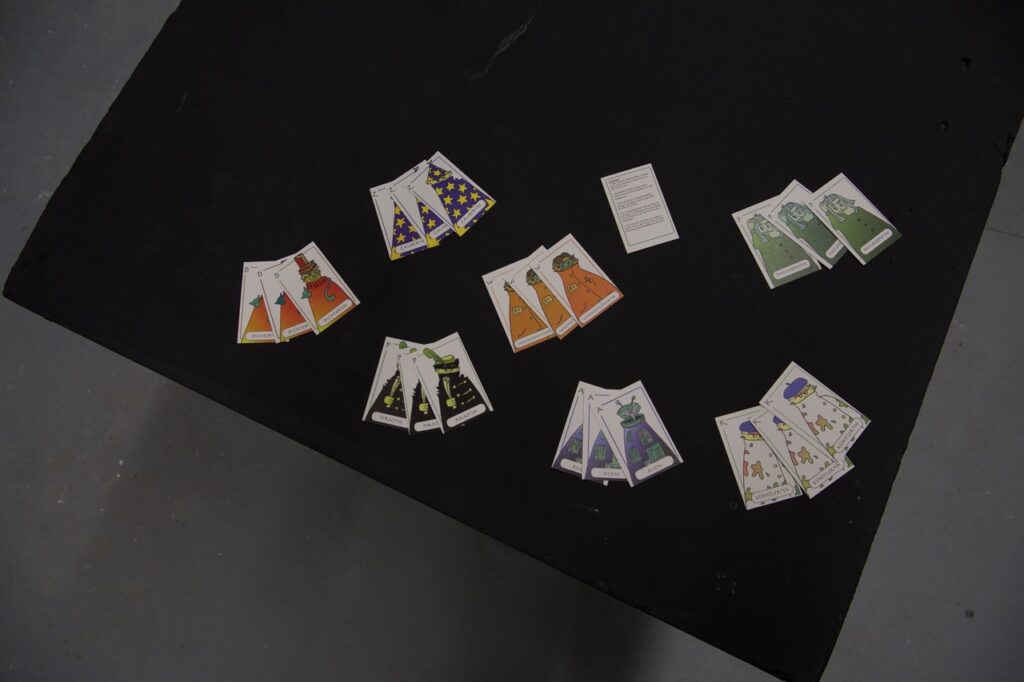 Abb. 1: Kartenspiel in Aktion zu Open Studios 2024. Foto: Gesa Krause, 2024 © Jakob Klukas & Le Thuc Anh Mai, 2023.